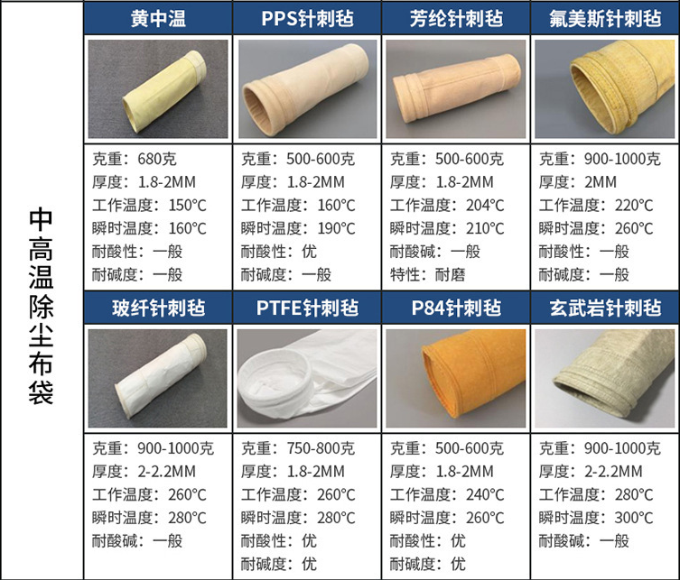 除塵布袋在布袋除塵器運行過程中,對于氣體中粉塵含有較多水分和油性以及吸濕性和易潮解性粉塵,在粉塵表面有可能生成水膜或油膜而增大附著性,這雖然有助于捕集粉塵,但將使過濾布袋的清灰出現(xiàn)困難。